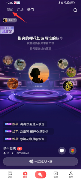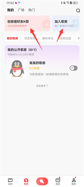 3、在这里就能看看创建歌房了,用户可以选择自己创建歌房,也可以选择加入好友歌房;