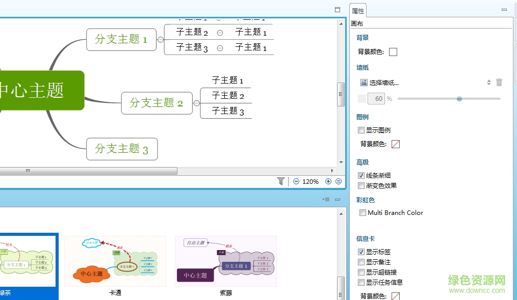 XMind提供直观独特的方法显示详细信息,每个主题的信息卡中,允许您显示或隐藏标签、备注、超链接和任务。