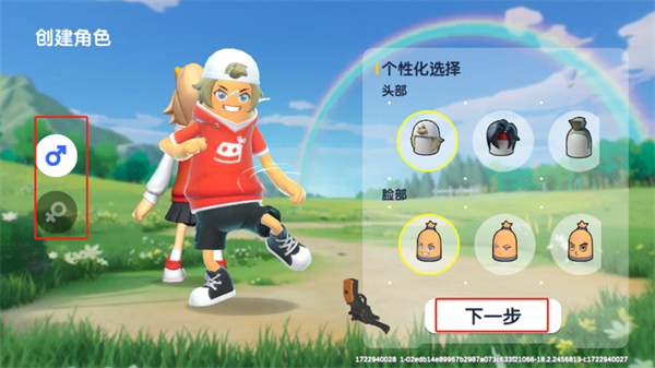 2、进入到场景内之后玩家将需要在左侧进行性别的选择,随后可以在右侧进行发型以及表情的选择,选择好之后点击“下一步”即可;