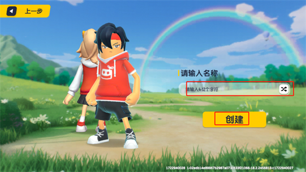 3、进入到这一步之后,玩家将需要给自己起一个合适的名字,也可以点击右侧的白色按钮进行随机起名,随后点击“创建”即可;