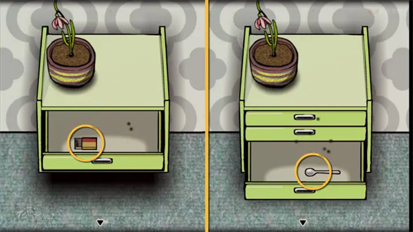 春天-落地钟视角:拾取【火柴盒】(第一个抽屉)和【勺子】(第三个抽屉)