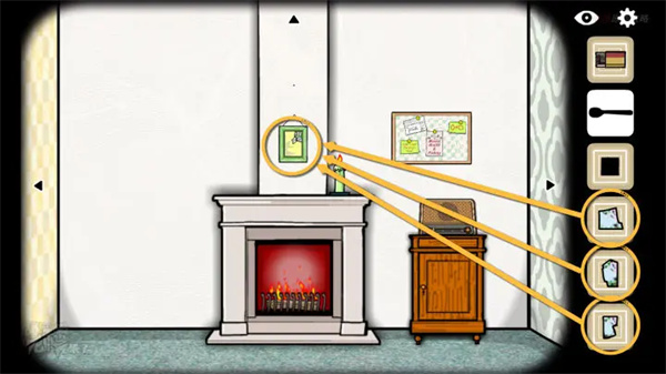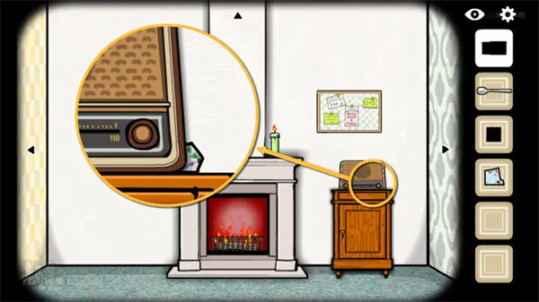 春天-壁炉视角:观察壁炉右侧的【收音机】,可以在收音机右侧拾取【照片碎片】