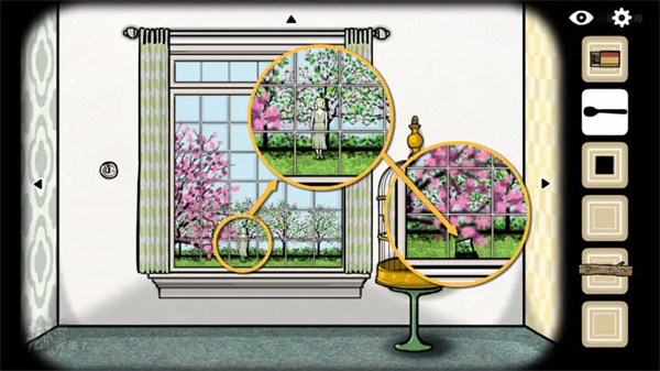 春天-窗户视角:观察【窗外】,似乎看到了自己,再点击一下【窗框】,会掉落一张【照片碎片】,这里顺手打开【窗户】左侧的【开关】
