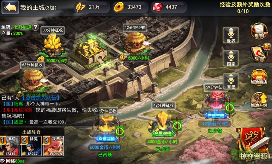 城池也是能稳定提供一定量的战力的,不过城池的等级和主公挂钩,只要主公满一定等级后,记得回来把城池等级提升,增强自己的战力哦!