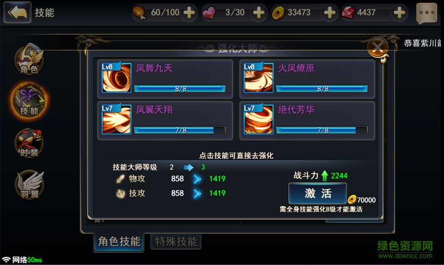 和装备一样,技能也是有技能大师的,当所有技能达到了一定等级后,就能从技能大师手上提升等级,增加战力,但是和装备不一样的是,技能大师提供的战力不会下降。