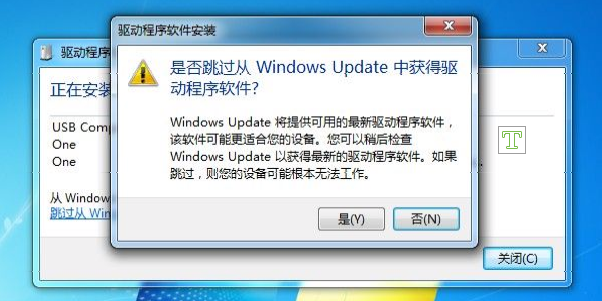 单击“跳过从windows update 获得驱动程序软件”。