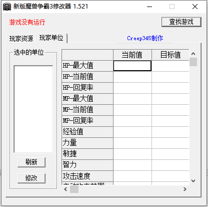 支持单位修改,方法:选中你要修改的单位,修改器就会自动显示其属性了。