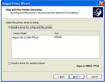 4. 在 Seagull 驱动程序精灵提示下,选择第一个单选按钮「为随插即用打印机安装驱动程序」按「下一步」: