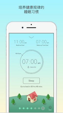 2) 每天在就寝目标时间前开启 app,开始建造房屋