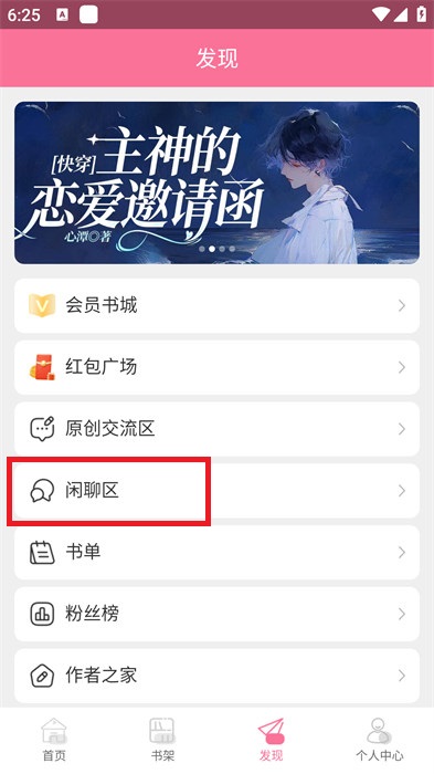 2、在发现界面中我们可以看到【闲聊区】点击进入到此功能界面;