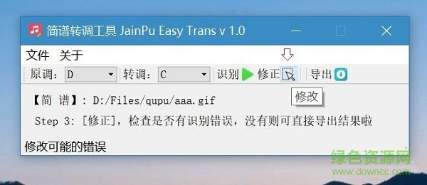 打开另外一张简谱,重复以上步骤1-3,然后点击“修正”按钮。