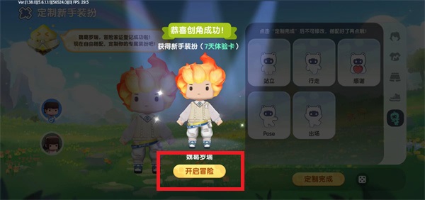 4、完成角色的创建之后,就可以进入游戏,点击【开启冒险】进入到游戏世界;
