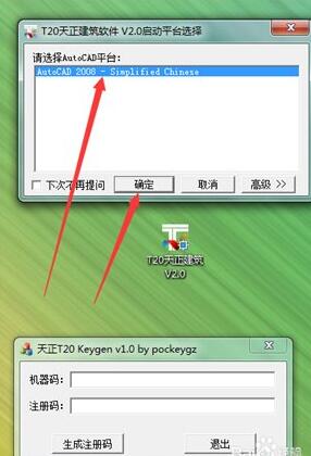 8.这里安装的CAD2008来配套使用天正T20的,所以直接点击确定即可。如果安装了几个版本的CAD的直接选择你需要的CAD版本。