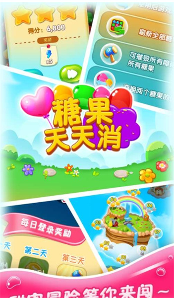 《糖果天天消》是一款集休闲益智于一体,充满可爱画面风格的游戏,也是一款唯美梦幻的女性休闲手机游戏!
