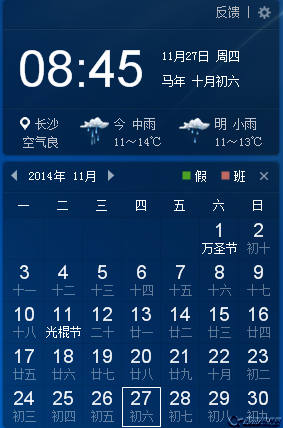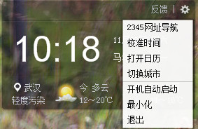 2345桌面天气日历挂件(电脑桌面天气插件)是一款桌面天气预报软件。该软件界面简洁、画面精致,还具有透明的皮肤和时间校准功能,非常漂亮,是一款贴心软件,还有常见的日历功能,可以为你精确的报告天气的变化,方便人们出行.软件小巧但功能强大,放在桌面,是你工作和生活的好帮手。同时去除了挂件下排的推广链接、标题的显示及其它推广链接。界面看起来比较清爽,是一款生活必备的工具。