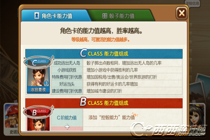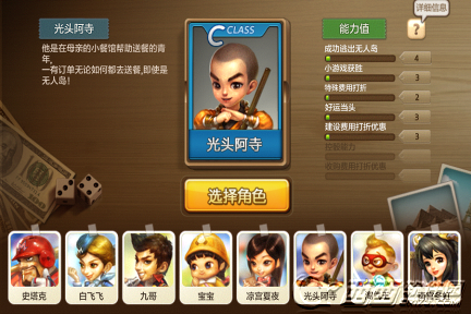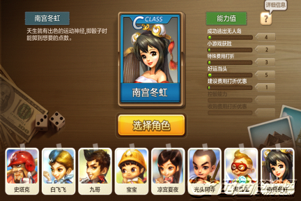 总共有8个角色卡可以选择,对应的能力值有所不同,点击右上角的问号可以查看详细信息说明,并可查看骰子能力值。