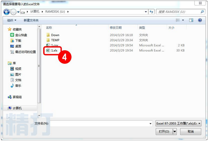 3.选择一个需要导入的Excel文件,我们这里示范使用1.xls