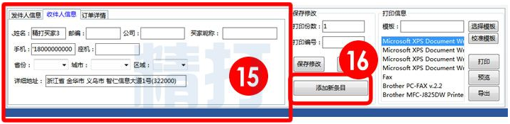 在⑪中选中一个或者多个订单,选中一个快递单模板和打印机,点击打印,即可输出打印内容了。