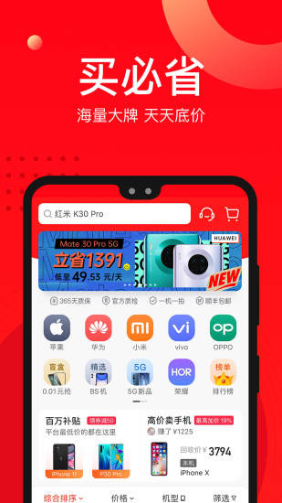 二手手机找靓机ios版是一款由深圳市万事富科技有限公司专为需要购买二手手机的朋友打造的交易平台,该平台手机全部保证二手正品哟,大家可放心购买,需要的朋友赶紧来下载吧