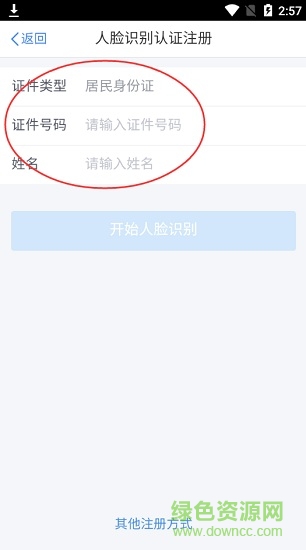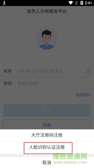 (1)人脸识别注册(仅适用于居民身份证注册);