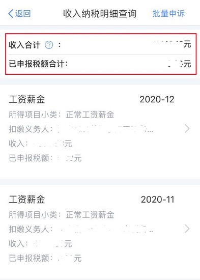3.查看2020年度综合所得收入纳税明细