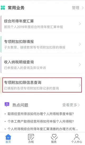 在首页依次点击【常用业务】-【专项附加扣除信息查询】,选择“2020年度”,可查看您已填报的专项附加扣除信息。