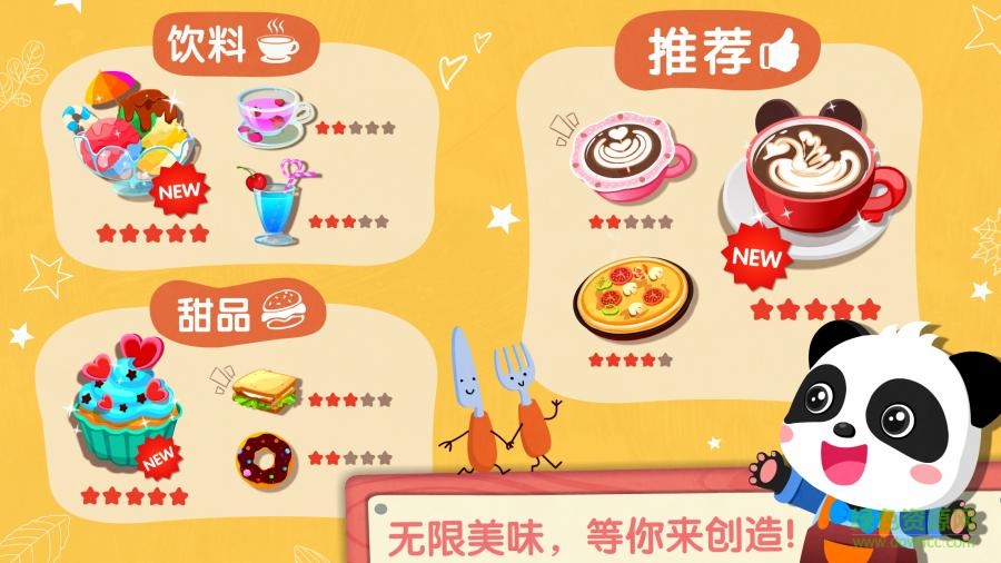 奇妙咖啡餐厅是一款最新上线的模拟餐厅手游,游戏中,小朋友将变身小店长,招呼客人哦,各种饮料,美味等你来推荐,游戏已为大家,喜欢的朋友赶紧来绿色资源网下载吧