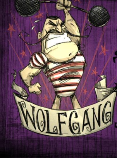 沃尔夫冈,有的版本译为“大力士” 。随着他的饱食度变化,他会在3种状态之间转换。人物一出生是中力士的状态 饱食度为200。 状态变化临界值:小力士变为中力士时饱食度大于或等于106|中力士变为大力士时饱食度大于或等于230|大力士变为中力士时饱食度小于或等于220|中力士变为小力士时饱食度小于或等于100(以上数据均经过亲自实验后得出) 这个人物有的版本译为“男子汉”,但这个男子汉绝对是假男子汉。他在晚上、黑暗中和怪物周围的减San光环会加强,导致他的脑残值掉的更快。