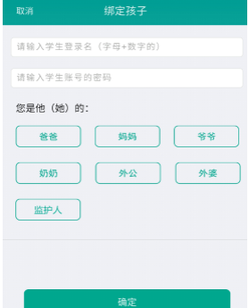 点击绑定孩子,填写您的基本信息,点击“确定”按钮完成绑定。