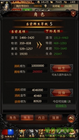 转生修为通过兑换经验和购买获得。