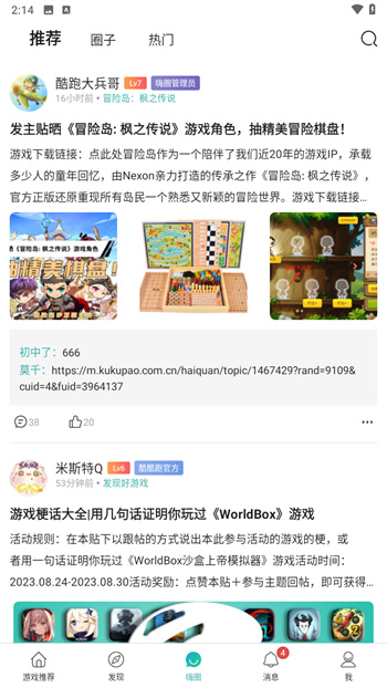 酷酷跑还致力于打造自由、有人气的游戏交流社区——嗨圈,用户可以在嗨圈自由的发布自己的想法,结交志同道合的玩家,相互推荐更好玩的游戏。
