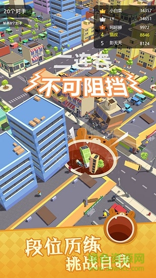 3.为了在竞争中占据主动,你需要通过滑动屏幕将自己控制的黑洞移动至可以吞噬的物体下方进行吞噬。树木,路标,建筑……凡是在场景中出现的物体都可以吞噬,包括其他黑洞。
