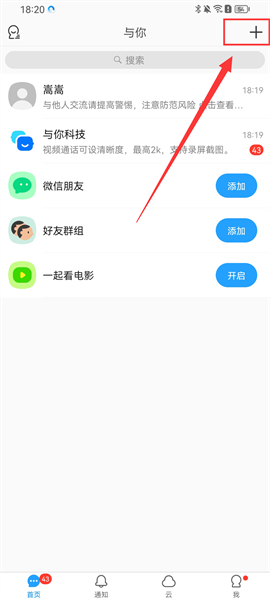 2、接着会出现一个小弹窗,点击添加朋友/群;