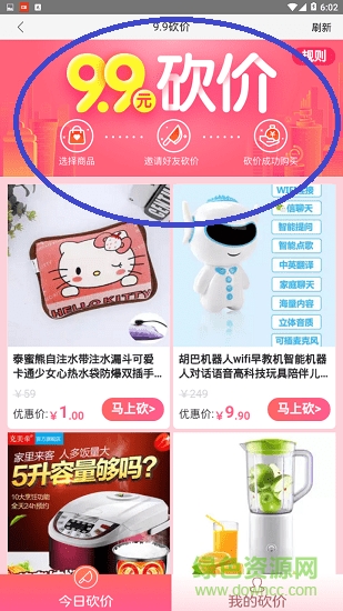 一、在首页直接进入“砍价1元购”即可进入。