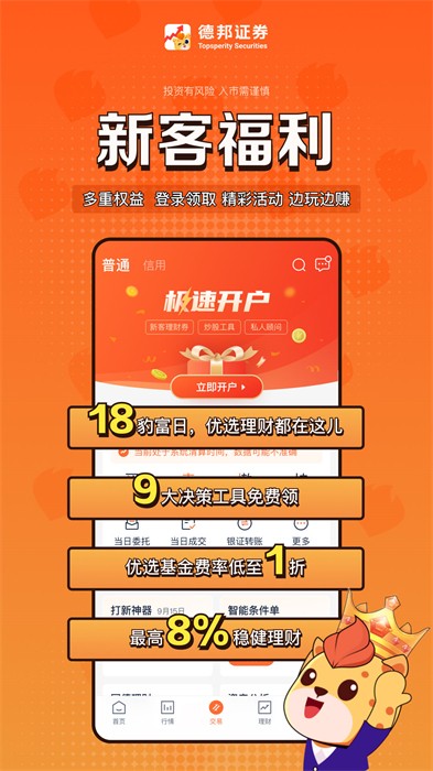 德邦证券高端版已正式更名为德邦证券,App风格焕新,炒股、理财、定投更畅快;积分福利每日领,商城好礼随心兑;精彩活动不停歇,红包、话费送送送;研选理财商城,专享理财产品,0费率,惊喜收益,基金费率1折起。德邦证券App,您身边的财富管理专家。