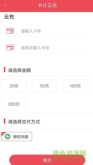 1、打开App,选择"卡片云充",输入卡号(只能充值CPU卡),选择需要充值的金额和支付方式,完成充值操作。
