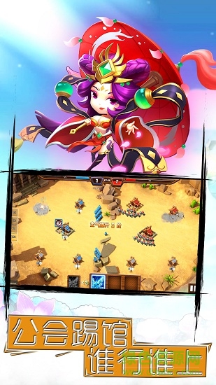 1.整体画面风格采用Q版卡通效果,玩家将在游戏中扮演主公,通过招募三国名将来争夺城池扩张疆土。
