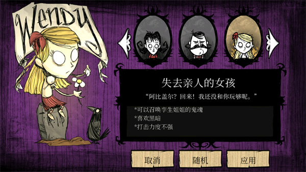 饥荒为数不多的0.75伤害角色,其实本来还好,但是姐姐太难控制了,我有好几次都是因为姐姐而死(姐姐闲着无聊去干三级蜘蛛巢)