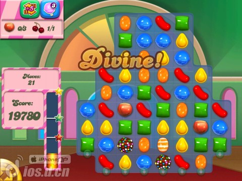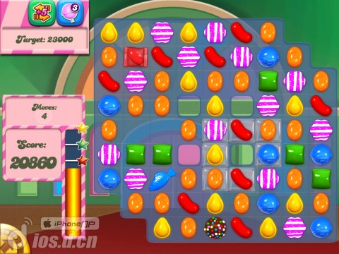 有些糖果会被放在果冻上,当糖果被消灭时,也会消灭下方的果冻。(果冻通常有两层)