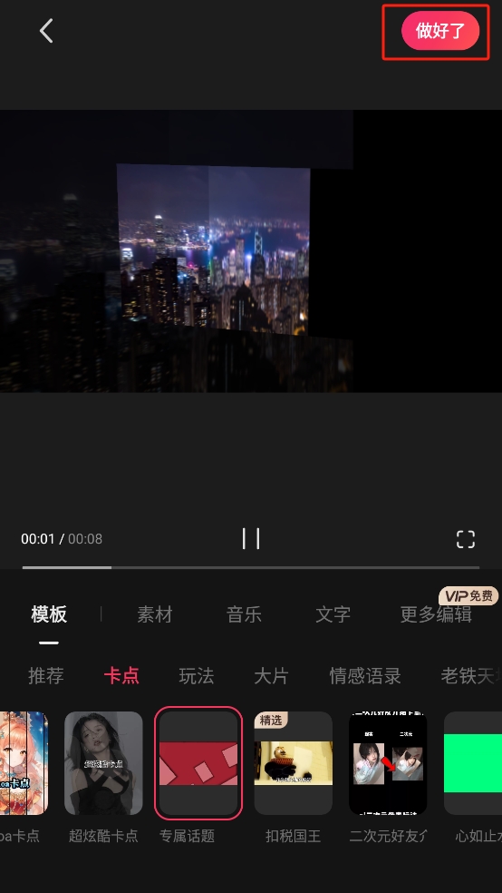 5、当你选择好想要的视频模板后,点击右上角的【做好了】就能进行内容的保存了;