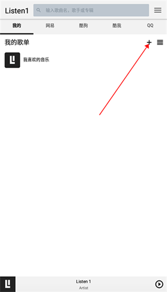 1.点击进入软件找到“我的”界面,在【我的歌单】中点击右上方的“+”号,如下方所示;