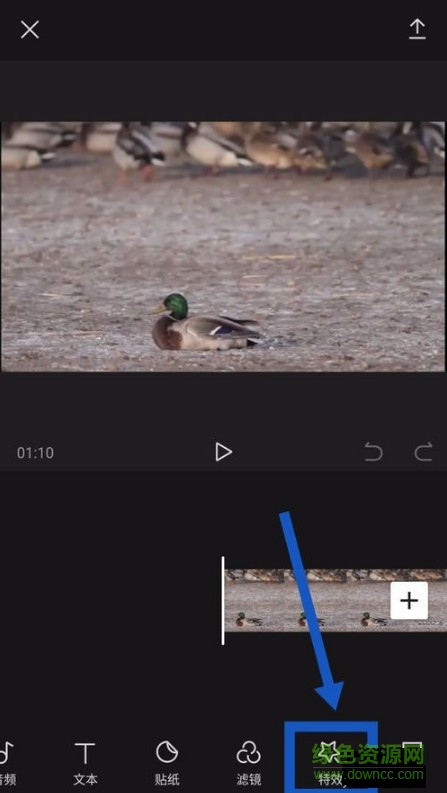 在打开的界面中,我们可以看到各种功能。有文本、贴纸、滤镜、特效等,大家可以根据自己的需求进行选择。