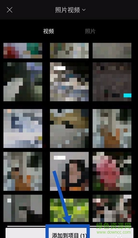 在打开的界面,选择要添加特效的视频,点击底部的添加到项目。如图所示