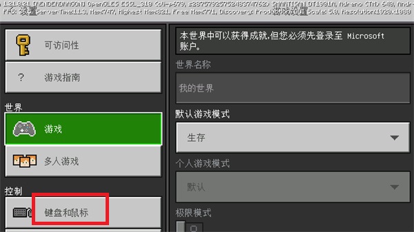 3、设置页面玩家需要找到【键盘和鼠标】功能,这样我们就可以进入到该功能;