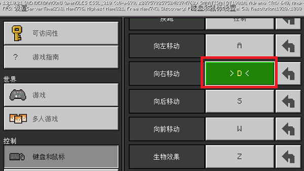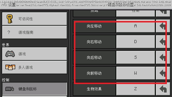 4、在该功能界面中下翻,就可以找到【移动控制键】去进行更改;