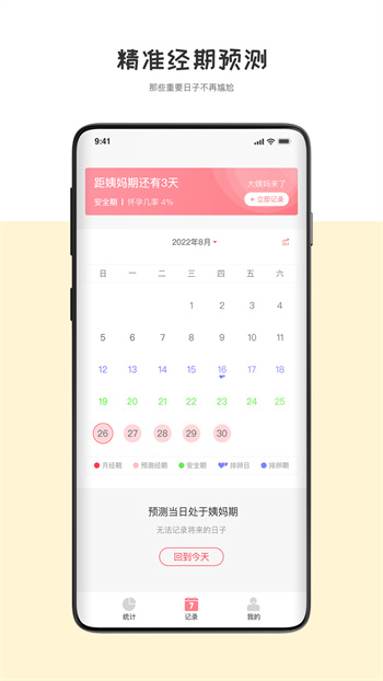 配备对抗大姨妈的贴身管家,记录、提醒、预测,让你避免经期的每一次尴尬;心情、爱爱、习惯,体贴经期的每一个细节。