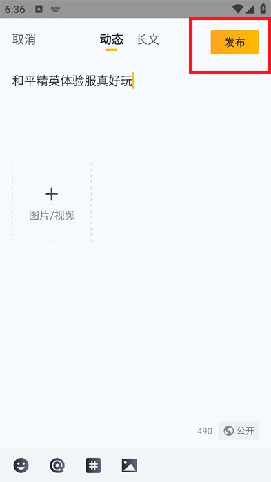 4、添加好所有的动态内容之后,用户就可以点击右上角的【发布】发布动态在社区之中。