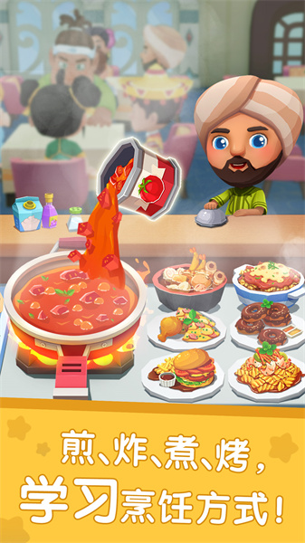 经营餐厅,积累财富,获取建设餐厅的材料道具,解锁全新国际特色餐厅。