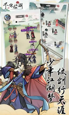 不休江湖游戏中提供了多元化的战斗系统,海量角色任你选择!设置了1v1华山论剑、3v3武林大会、实时匹配激情PK,风骚走位,无限连招!极致斗战英雄对决,颠覆性的战斗系统,邂逅仙界奇缘携手夺战浪迹八荒!轻松的离线战斗、挂机战斗、自动升级等让玩家的每次游戏体验都与众不同!