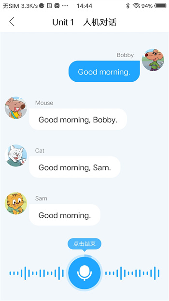 可实现单词、对话或课文原版点读,中英文互译、朗读练习、背诵练习、单词听写、听力、人机对话、语音评测(同时支持离在线混合评测)和数据分析。